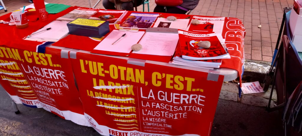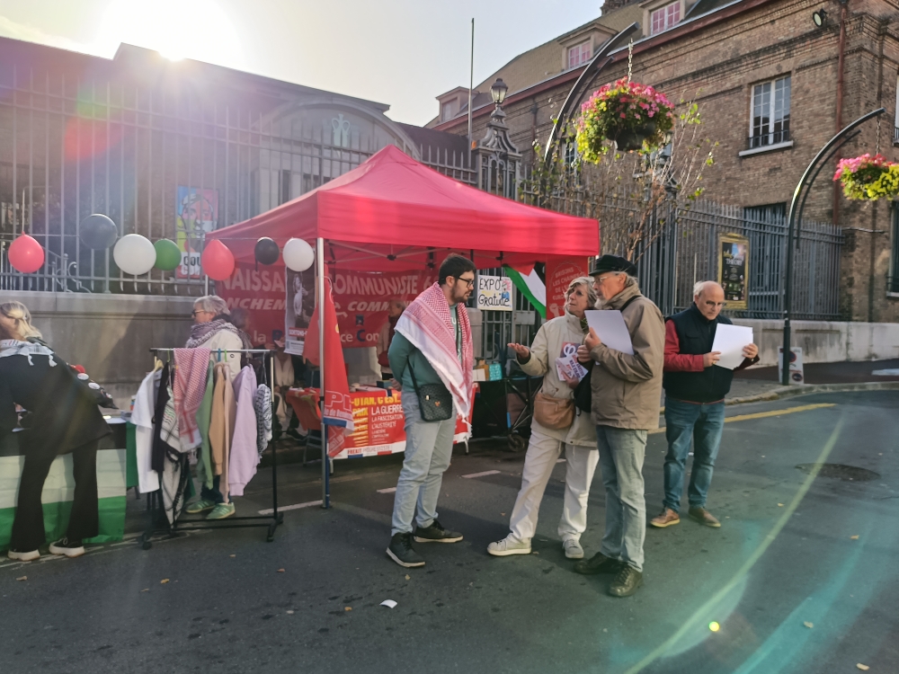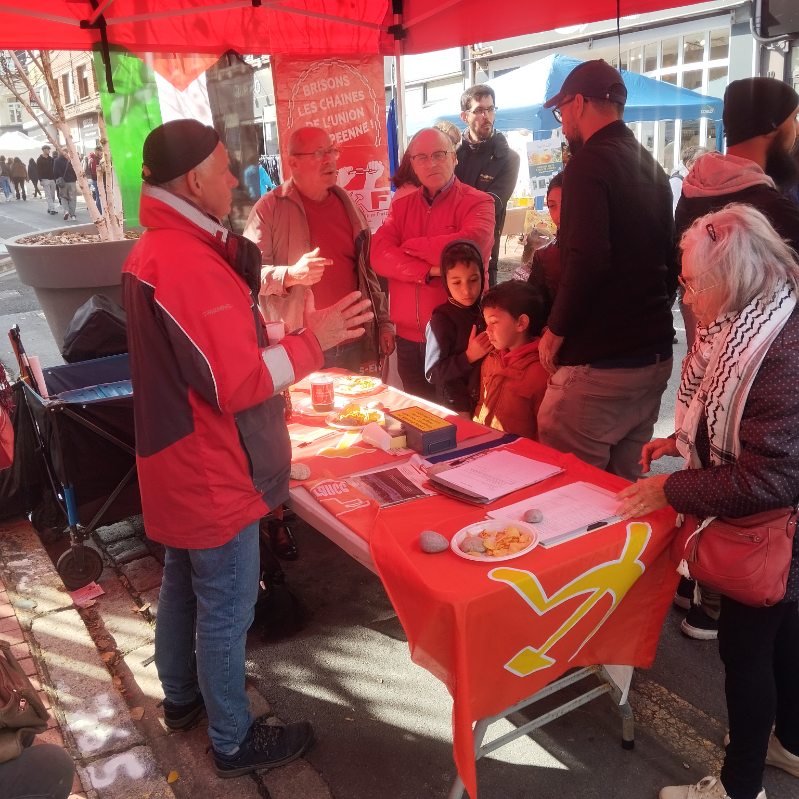 Le PRCF 62 (Lens, Boulogne & alentours) était cette année encore à la manoeuvre, à l’occasion de la braderie d’automne qui se tenait à Lens ce dimanche 5 octobre. Malgré un emplacement excentré délivré à la dernière minute par les organisateurs, la rue de la PAIX était le bon endroit pour faire signer nos deux pétitions, l’une dénonçant le génocide à Gaza et l’autre réclamant de l’argent pour les salaires et les services publics, non pour la guerre & pour l’OTAN ! Si nombre de signataires nous rencontraient pour la première fois, nous avons constaté un large consensus sur les responsabilités de l’UE & de l’OTAN dans la course à l’armement, pour le plus grand bénéfice des plus riches, mais au prix d’une austérité sans fin pour tous les autres, au risque de nous précipiter dans une 3e (et probablement… dernière) guerre mondiale.